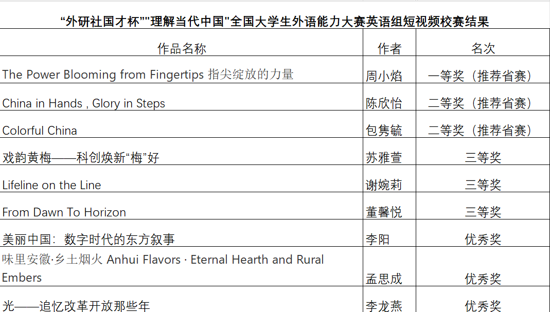2025“外研社国才杯”"理解当代中国"全国大学生外语能力大赛英语组短视频校赛结果公布