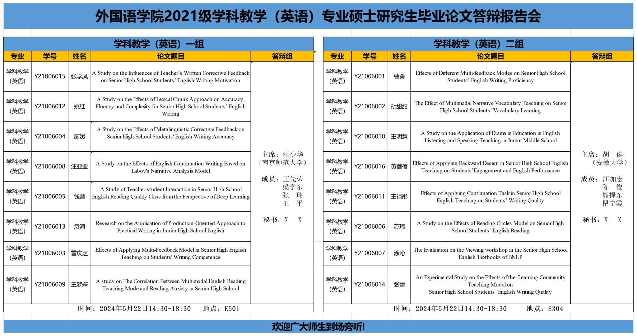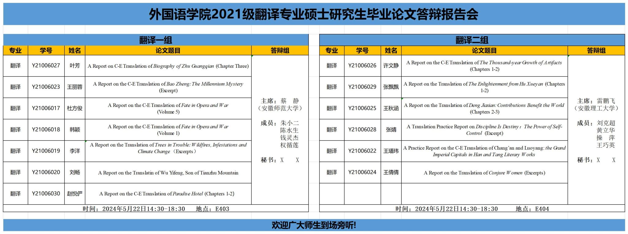 海角 2024年上半年学科教学(英语)、翻译硕士研究生学位论文答辩工作安排