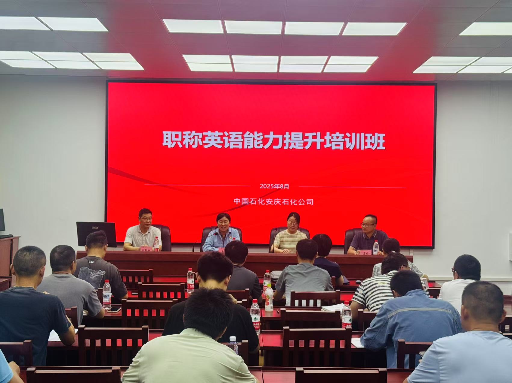 与中国石化安庆分公司联合举办的首届员工职称英语能力提升培训班,在石化培训中心举行开班典礼。中国石化安庆分公司党委组织部副部长余婷、人力资源专家朱劲松出席仪式,海角