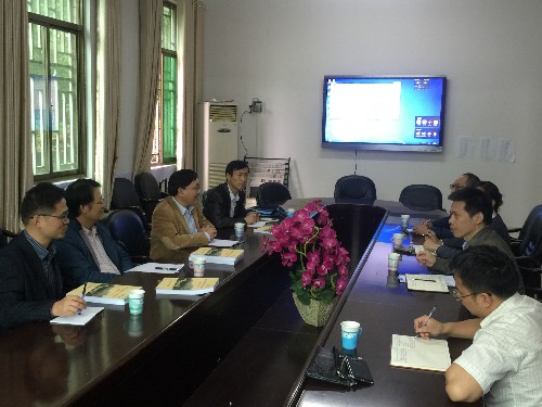 考察组一行。在交流会上,汤敬安院长简要介绍了本院MTI的申报经验,简功友副院长以PPT的形式对相关申报材进行了展示和详细讲解。接着,双方就党建、学科建设、教学科研工作等进行了深入交流。郝涂根院长对吉首大学海角