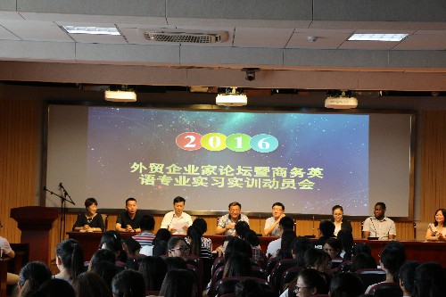 举办了外贸企业家论坛暨非师范类毕业生实习动员会,张家港电商会顾问、江苏科技大学黄徐进教授,蓝标纺织公司、凌晔公司、王牌机械进出口有限公司、众成针纺织品公司等首批四家外贸公司负责人应邀参加了大会,正式开启了海角