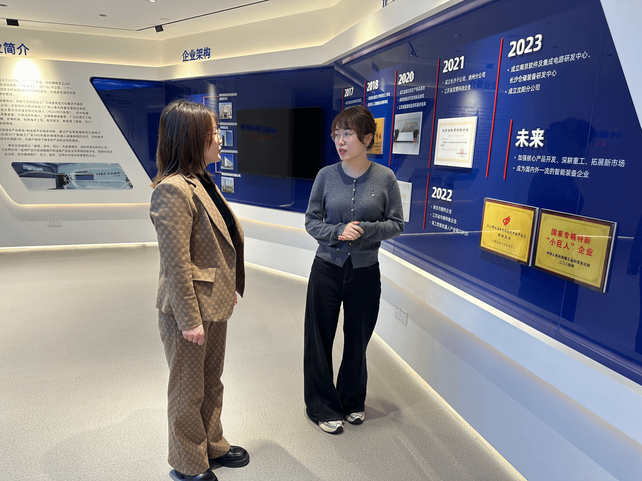 南京合信自动化有限公司成立于 2017 年 10 月,是专注于工业智能机器人、先进焊接及制造工艺等智能制造系统产品全生命周期的高新技术企业。公司现有员工 200 余名,研发人员占比超 40%,已获知识产权 136 项,通过 ISO 质量管理、环境管理、职业健康管理体系认证。作为国家级专精特新小巨人企业、江苏省瞪羚企业,合信自动化产品涵盖重型物流机器人、巡检机器人、焊接机器人成套装备等,广泛应用于航空航天、工程机械、港口机械等高端装备制造领域,先后为中国船舶、徐工、中联、三一、柳工、太重、航天科工等企业提供数字化工厂建设服务。