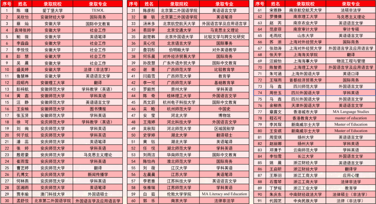 在此,我们向所有成功上岸的考研学子致以最热烈的祝贺!愿他们在未来的学术道路上步履不停、笃行致远,勇攀高峰,再创辉煌!同时,也希望全院同学以他们为榜样,志存高远、勤学不辍,追求卓越,在今后的学习与生活中书写属于自己的精彩华章!(撰稿:胡正然;审核:何媛君 江加宏)