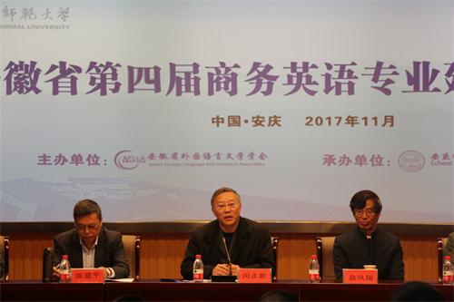 隆重召开。来自安徽省各高校外语院系党政领导、商务英语专业教师代表参加了研讨会。党委副书记、校长闵永新教授出席开幕式并致辞。