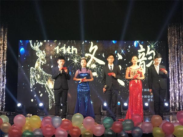 在学院舞蹈团热情奔放的开场舞渲染下,冬之韵晚会拉开了序幕。整场晚会分为Chinese Elegance、Western Grace、Future Pace三个篇章,节目形式多样,精彩纷呈。美奂美仑民族舞蹈《茉莉花开》《索玛花开》、急管繁弦的乐器演奏《卡农》尽显外院学子多才多艺的风采,多语种的主持风格、深情演绎的英文话剧《冰雪奇缘》彰显外院博采众长、共语辉煌的独特文化风格,穿越时空的文化展示《梦回古今中外》、动听的中外歌曲串烧抒发了外院学子坚持文化自信和以“各美其美,美人之美,美美与共,天下大同”推动文化传承创新的使命情怀,声情并茂的朗诵《青春献礼十九大》更展示了外院学子学思践悟十九大、同心共筑中国梦的使命担当。