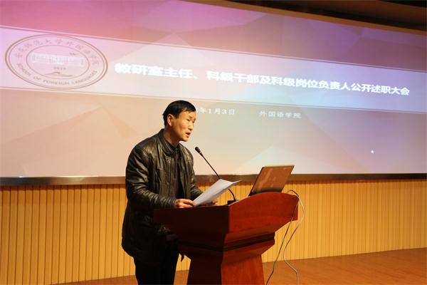 党总支书记、院长郝涂根认真听取了个人述职并点评。学院全体教师及学生代表参加大会。大会由学院党总支副书记、副院长王先荣主持。
