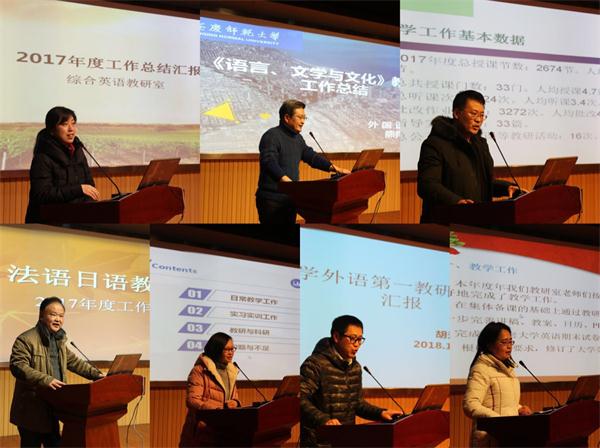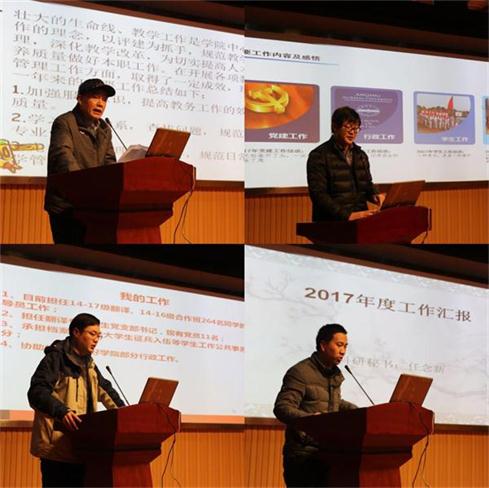 举行教研室主任及科级干部述职大会,是学习贯彻会议精神的一项重要举措。他强调,学院各教研室主任、科级干部是学院治理体系和治理能力现代化的生力军,是推进各项工作举措落地的主要执行者,是学院发展的重要依靠力量。通过公开述职,旨在发挥学院广大中层干部的主体作用,强化责任意识,提升履职能力。他在点评中充分肯定了各教研室主任、科级干部在2017年中所做的工作和取得的成绩,并希望他们要紧扣校党代会提出的“六项重点任务”开展工作,鼓足干劲、勠力同心、锐意进取、开拓创新,为学院的发展贡献力量;要着眼学院教学内涵建设,完善学院质量监控体系,巩固教学工作的中心地位、教学改革的核心地位和教学建设的优先地位,争取以优异成绩通过本科教学工作审核评估。