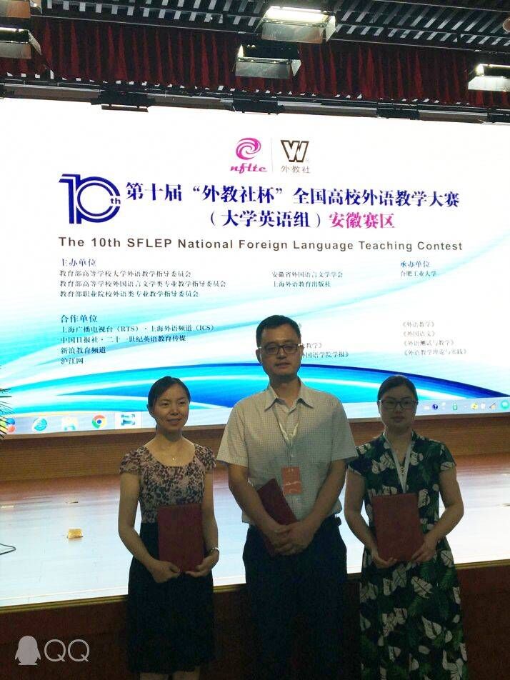 王爱琴、伍健、林灵三位青年教师凭借过硬的专业素质、扎实的教学基本功和良好的精神风貌在大赛中取得佳绩。王爱琴在综合课组决赛中名列第二,获得一等奖;伍健老师获得跨文化课组二等奖;林灵老师获得视听说课组三等奖。