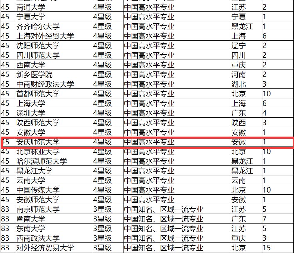 英语专业位列全国并列第45名,在安徽省高校中与安徽大学并列第一。