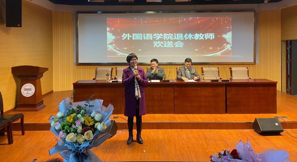 王先荣院长肯定了两位老师多年来兢兢业业、勤勤恳恳的工作,赞扬他们用知识的甘露滋润着学生的心田,用无悔的青春演绎着诗意的人生,为学校和学院的发展,为学生的成长成才贡献了力量,奉献了青春年华。青年教师代表向两位老教师献上了鲜花。两位老师也用简单朴实的话语表达感激之情,诉说内心的不舍。