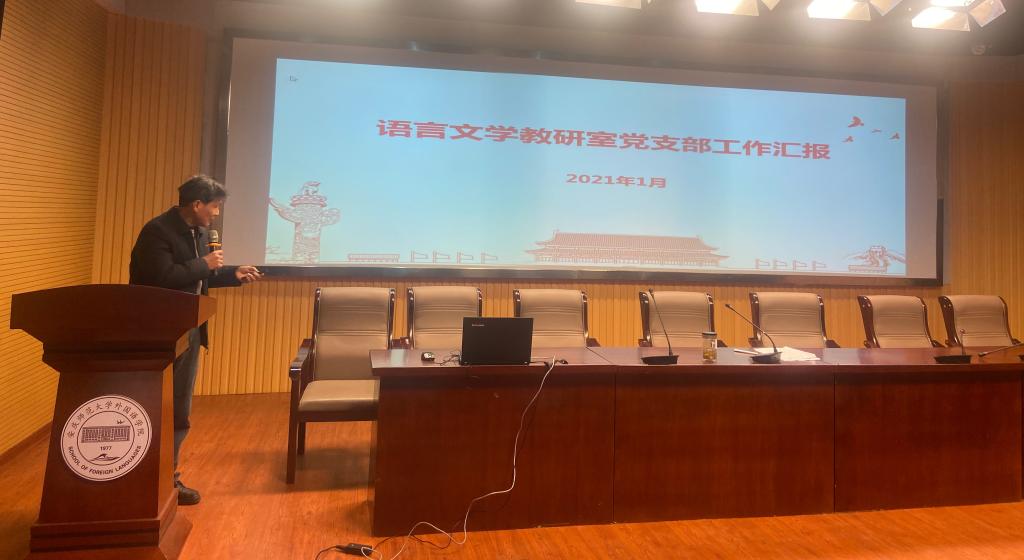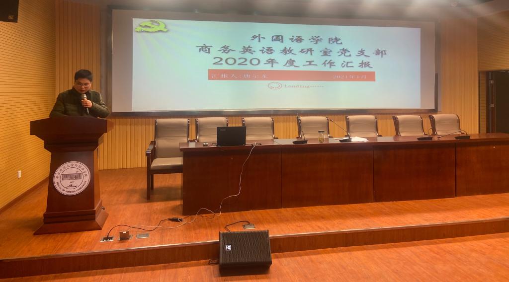 会上,10名党支部书记围绕一年工作、党支部七个有力标准建设以及特色品牌活动开展等情况逐一上台汇报展示,详细总结了各党支部一年以来以省级高校新时代党建设“双创”标杆院系党委建设为契机,充分发挥党员先锋作用,围绕学院中心工作推进事业发展所取得的各项成果。 2020年,各党支部攻艰克难,共同完成师范专业认证工作;翻译写作教研室党支部书记和商务英语学生党支部书记积极参与社区疫情防控服务,先进事迹被学习强国等媒体报道;学院五名学生党员获评校级疫情防控优秀志愿者;法语师生党支部学生刘童童获评安徽省“向上向善好青年”;学院“党建+创新创业”特色活动取得丰硕成果,学生项目在A类赛事中获得全国铜奖2项,安徽金奖3项。