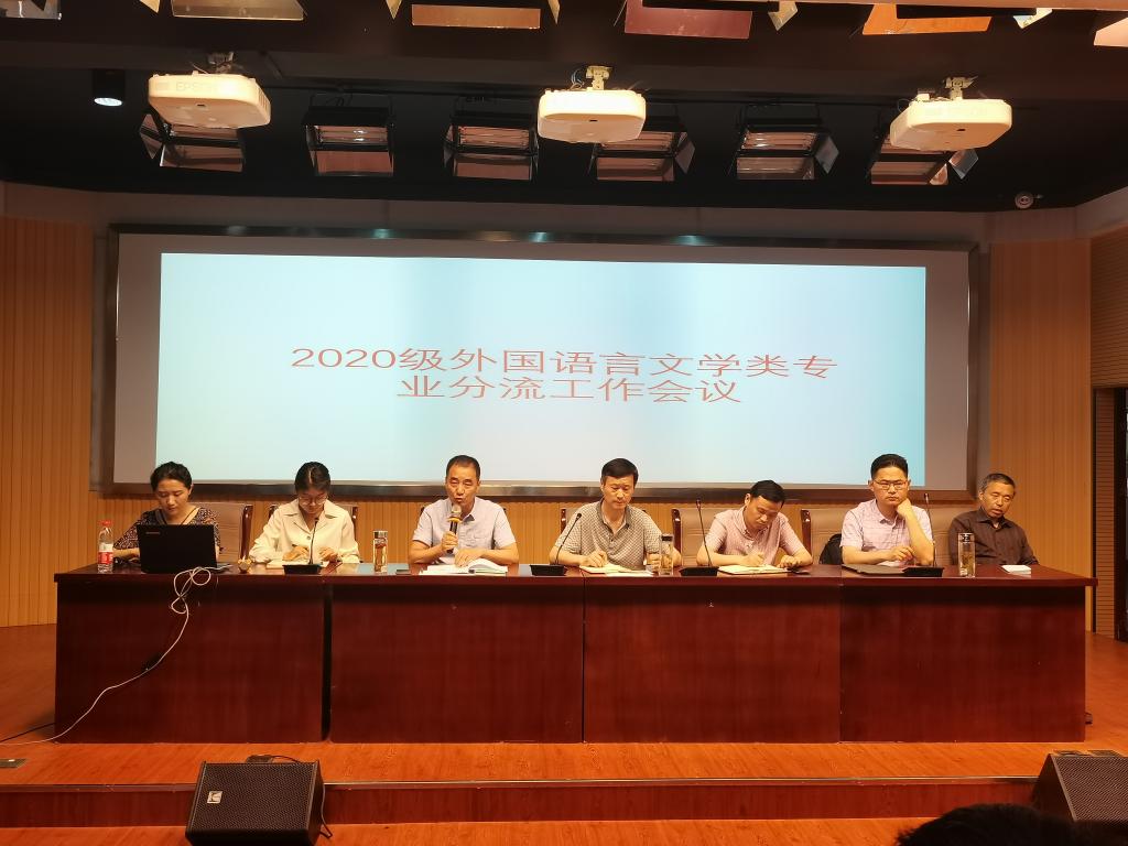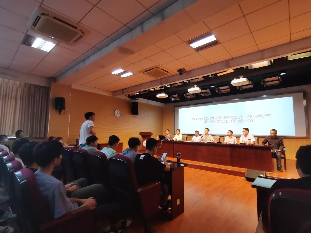 院长王先荣、副院长江加宏、党委副书记夏斐、英语师范专业负责人王平、商务英语专业负责人杨洁、翻译专业负责人陈水生、2020级辅导员谢小雨及2020级外国语言文学类专业全体学生参加了此次分流工作会议。