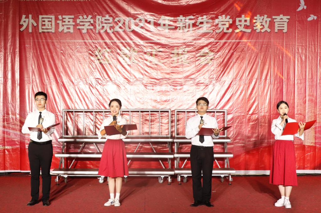举行2021级新生开学典礼暨新生党史教育红歌汇报会,为新生们上了一堂别开生面的入学教育。13个新生班级共386人登台献唱,将13首红歌献给党,学院党委书记李亦亮、院长王先荣、副院长江加宏等领导老师出席。