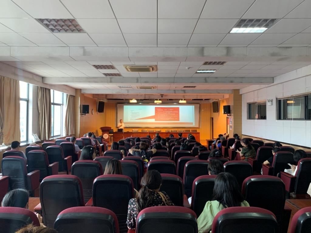 学科教学(英语)教育硕士教育中心主任王平副教授在E503举办了题为《英语(师范)专业毕业设计撰写与规范》专题培训会。学院班子成员、全体毕业论文(设计)指导教师参加了培训。培训会由副院长江加宏主持。