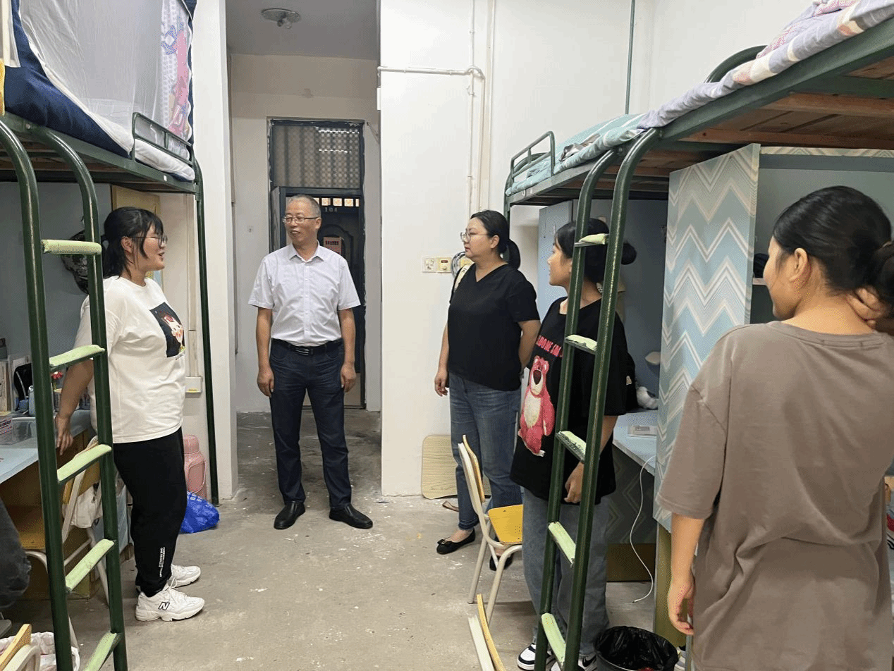党委书记李亦亮、院长王先荣、副院长江加宏、副院长黄全灿、副院长瞿宁霞、党委副书记何媛君,以及新生辅导员共同走进新生宿舍,向新生的到来表示热烈的欢迎和诚挚的问候。