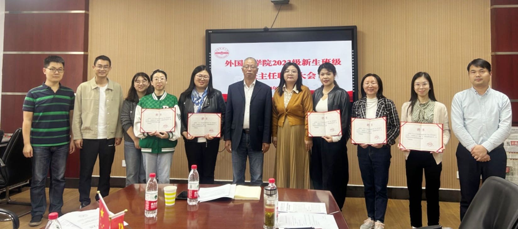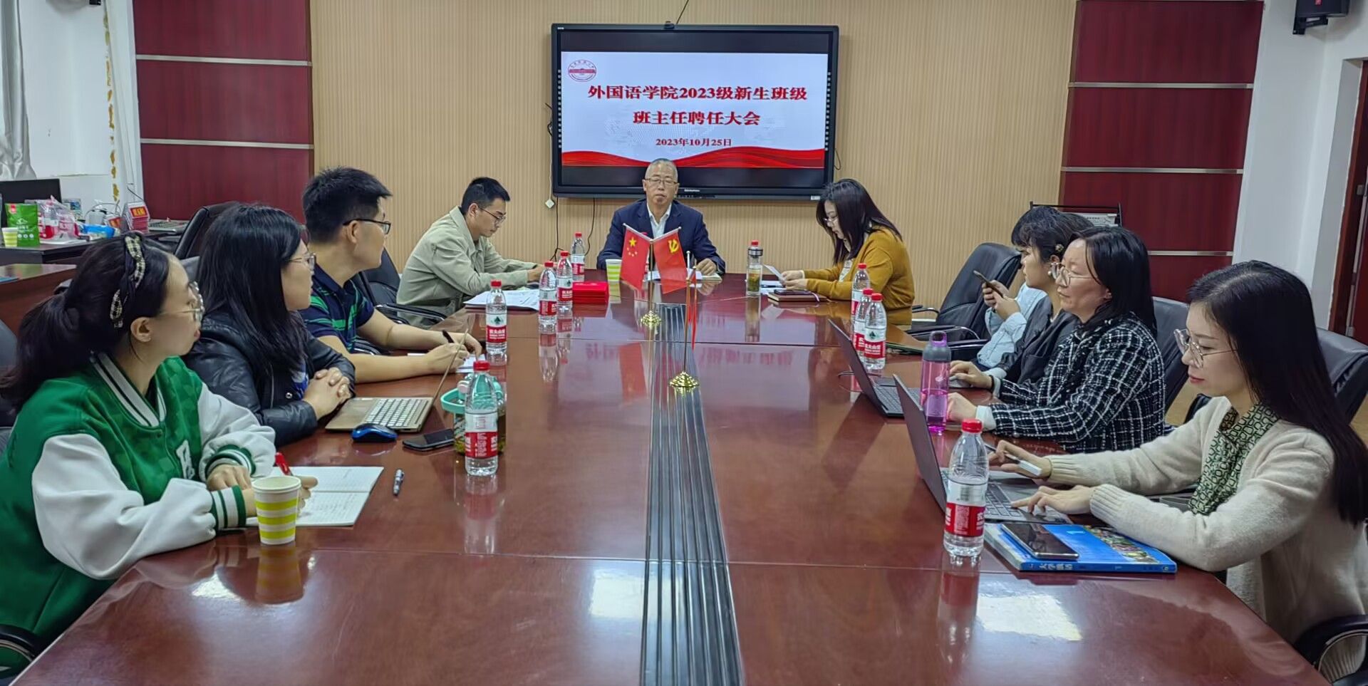 2023级本科班班主任聘任大会于外语楼304会议室举行,学院党委书记李亦亮出席会议,新生班级全体辅导员和班主任参加会议,会议由学院党委副书记何媛君主持。
