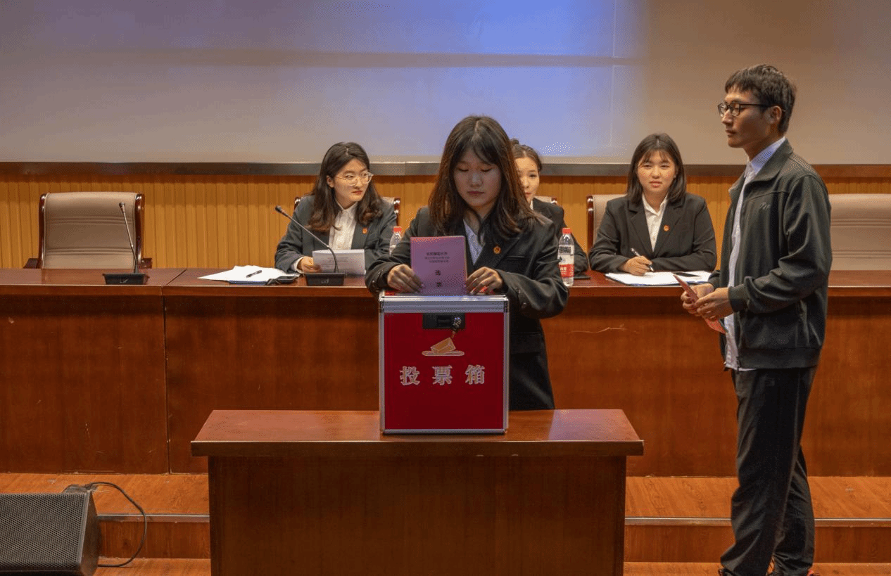 于E503召开第五次学生代表大会,学院党委书记李亦亮、党委副书记何媛君、团委负责人以及80名学生代表共同参加了会议。