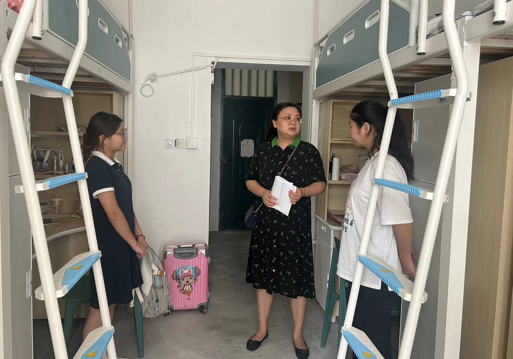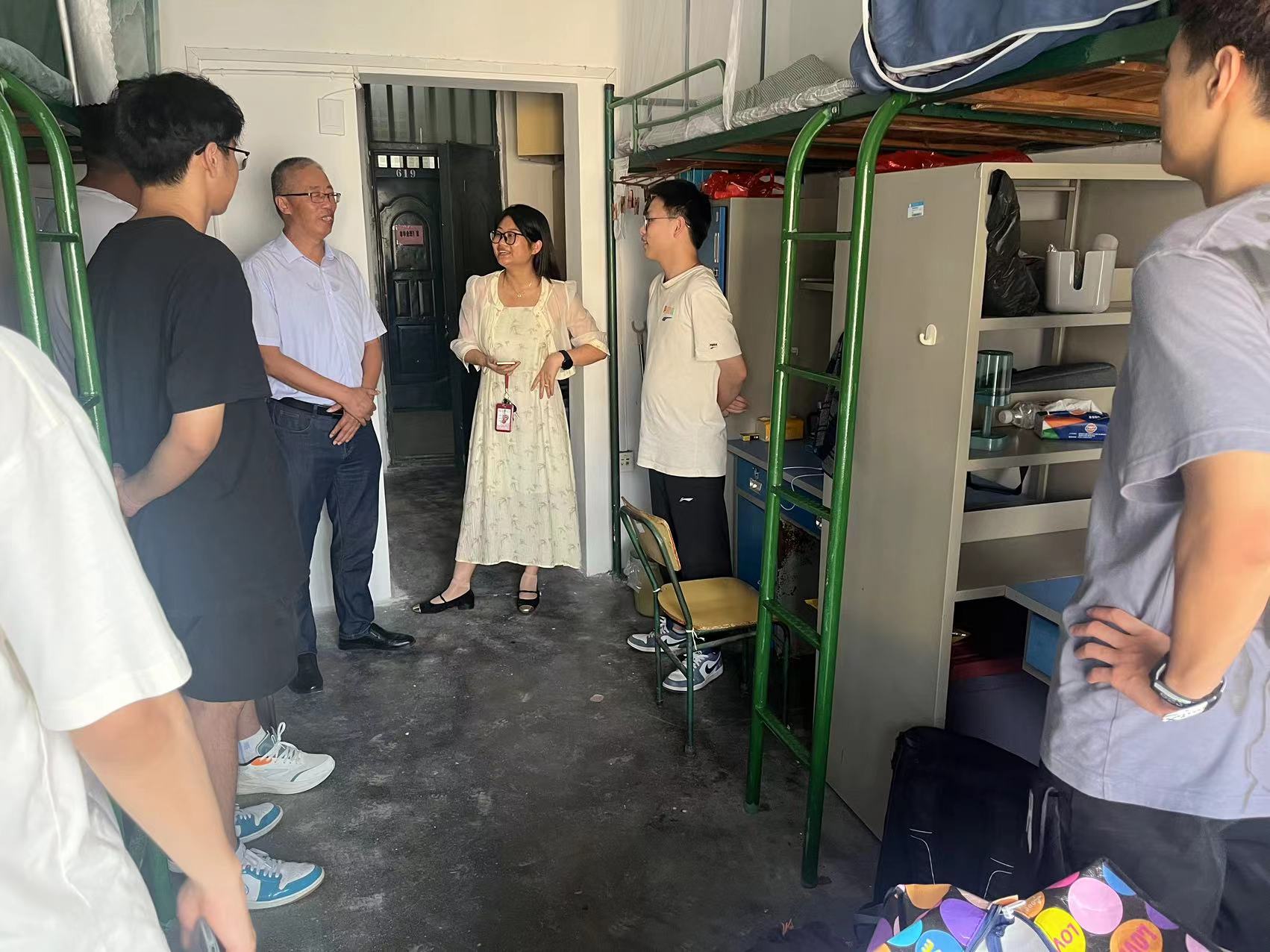 党委书记李亦亮、副院长江加宏、党委副书记何媛君带领全体新生辅导员深入学生宿舍,传递人文关怀。