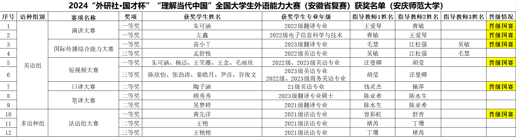 国家级一流英语专业建设、法语专业人才培养和大学英语教育教学改革显著成效。