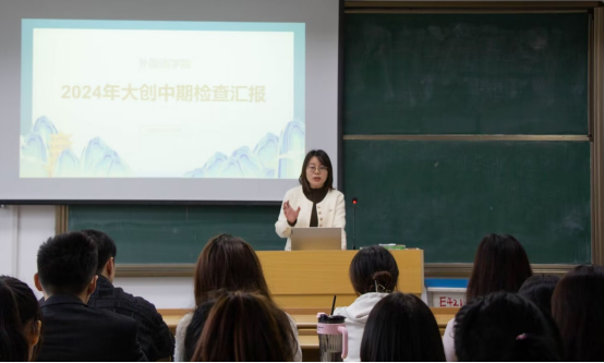 在E316教室举行2024年大学生创新创业训练计划项目中期进展汇报会。学院副院长瞿宁霞和创新创业项目负责教师胡正然及部分学生干部参加了会议。