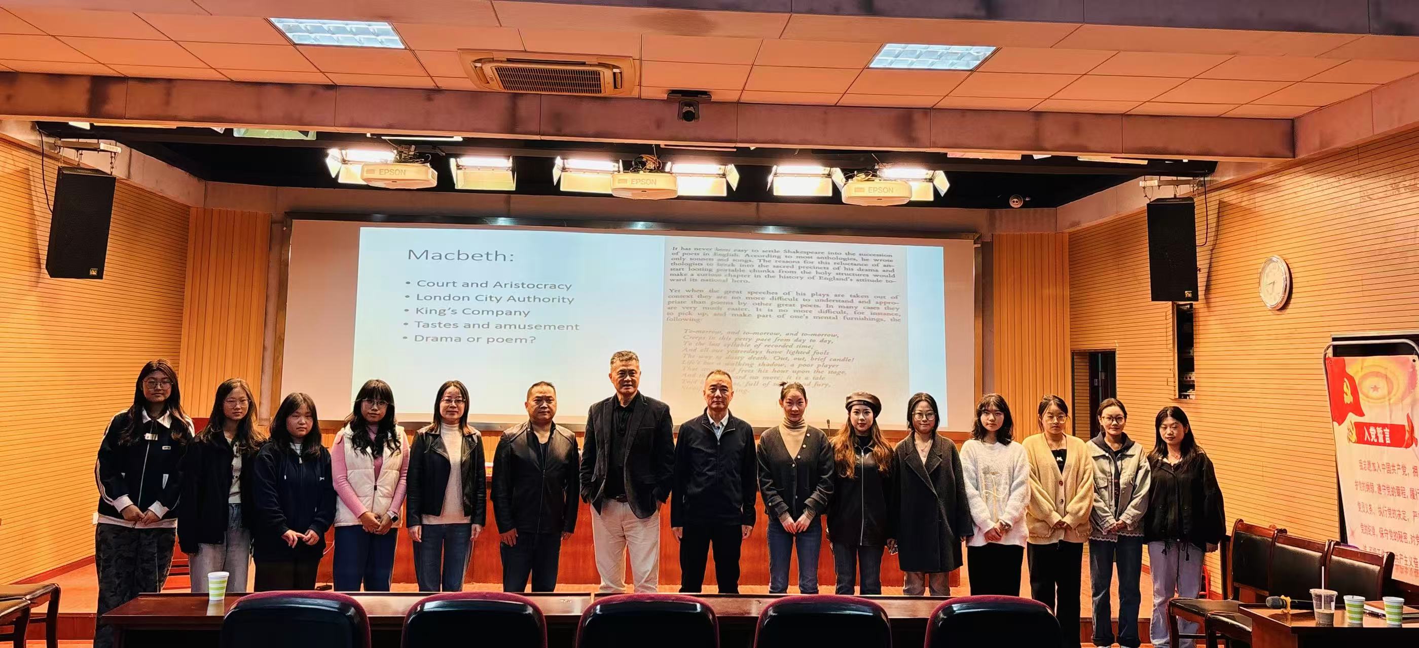 “望道讲坛”,作题为《莎士比亚的人生和戏剧》的专题学术讲座。学院教师、研究生及本科生共百余人参加了讲座。讲座由院长江加宏主持。