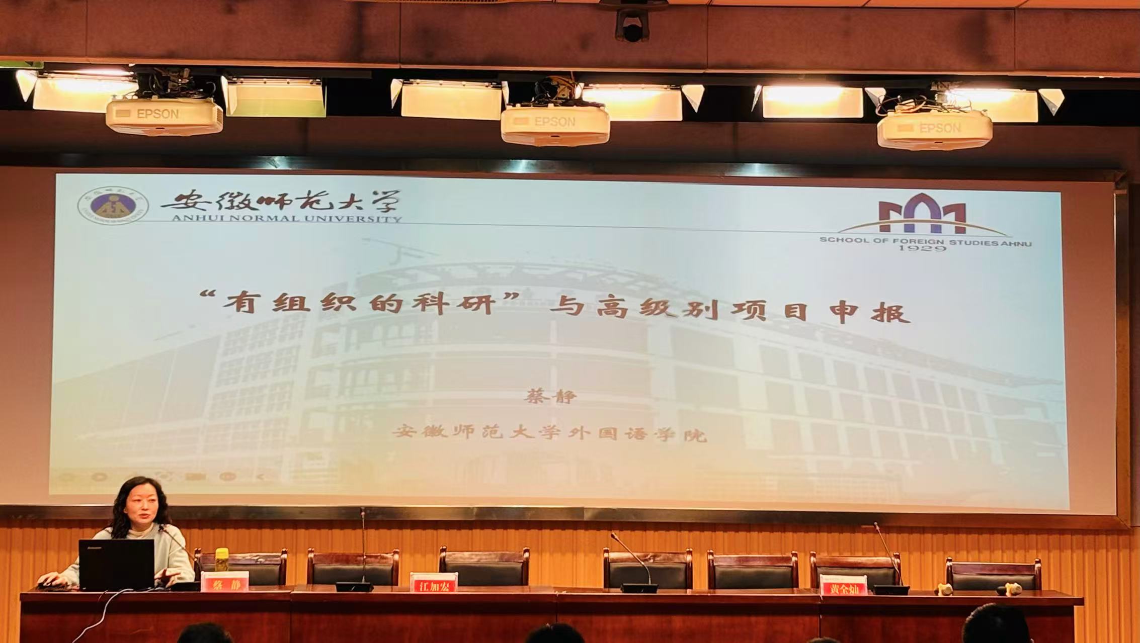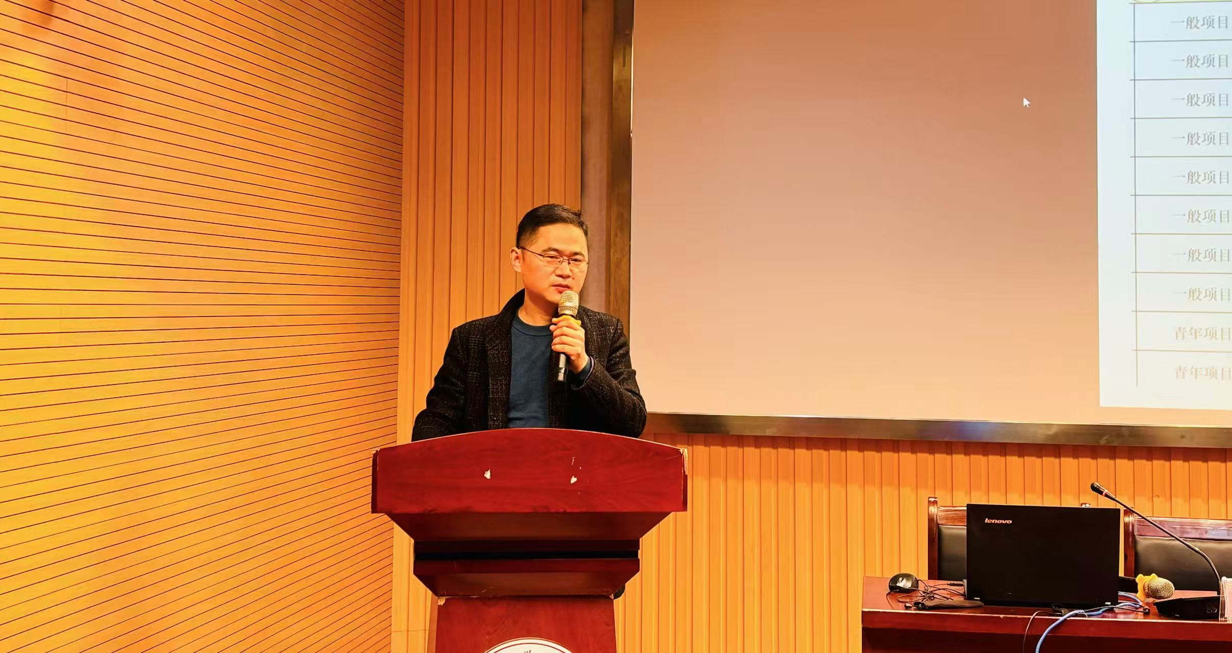 科研副院长蔡静教授作题为《“有组织的科研”与高级别项目申报》的主旨报告。学院领导班子、全体副高级及以上教师、博士教师、青年教师共计六十余人参会。会议由副院长黄全灿主持。