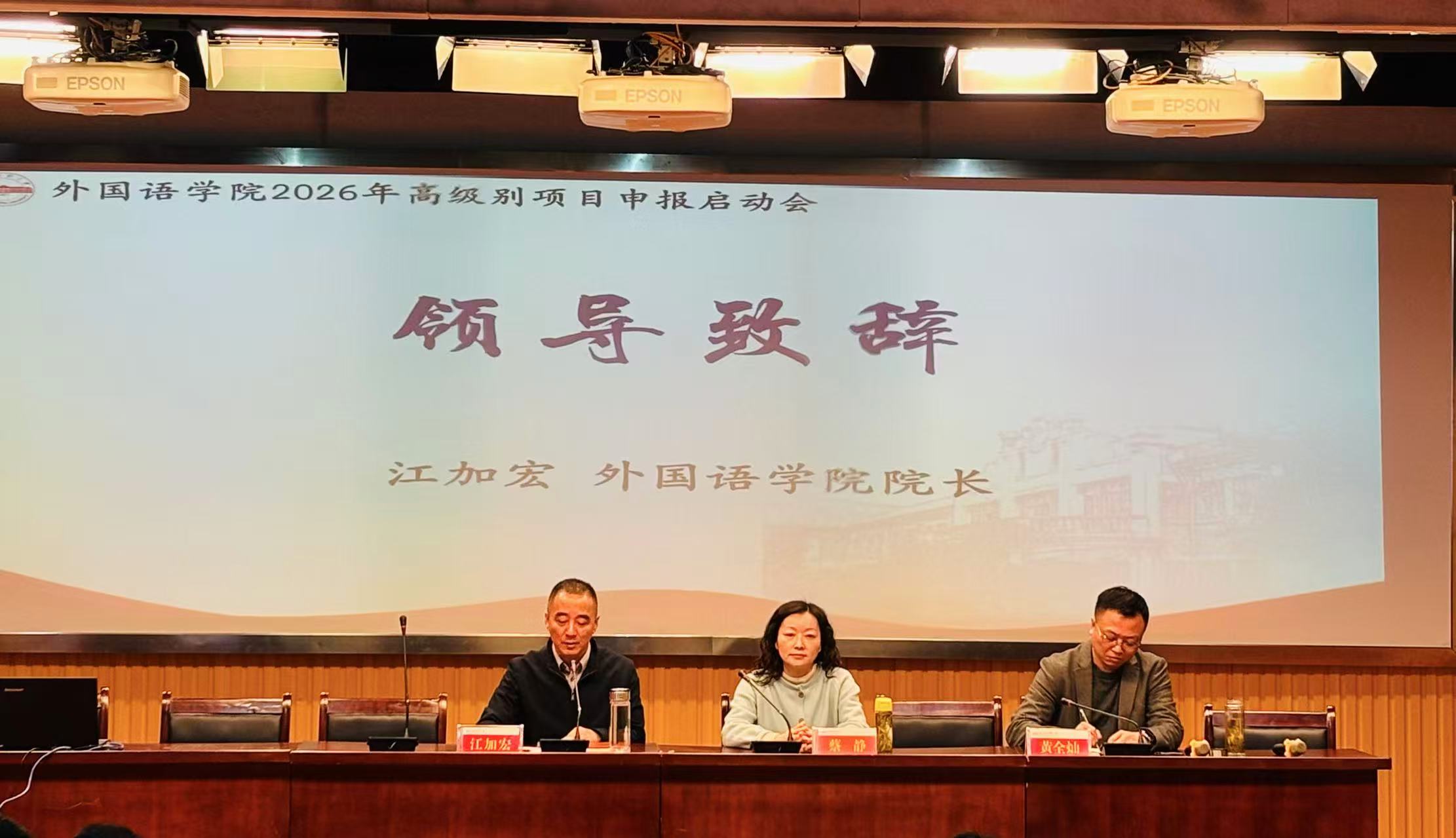 必须聚焦国家战略导向与区域发展需求,主动融入学校发展大计,积极推进科研组织模式创新,全面提升科研质量与育人能力。他强调,未来学院将重点抓好三项工作:聚焦项目申报强攻关,围绕国家社科基金、省部级重点项目等高层次课题精准谋划、集智攻坚;聚力平台升级促发展,以“黄梅戏文化外译”为代表的在地长江文化对外传播特色方向为突破口,推动科研平台建设走深走实;聚能导师成长提素养,通过系统培训提升导师科研指导力和研究生培养质量。他表示,科研从不是个体的突围,而是集体的跃升,唯有将教师个体潜力汇入有组织的集群力量,才能真正实现从“追赶式科研”向“引领式科研”的跨越。