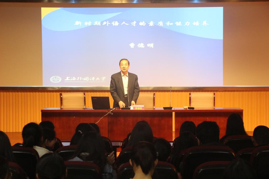 师生作了一场题为“新时期外语人才的素养和能力培养”的学术报告,100余名师生聆听了讲座。讲座由王先荣教授主持。