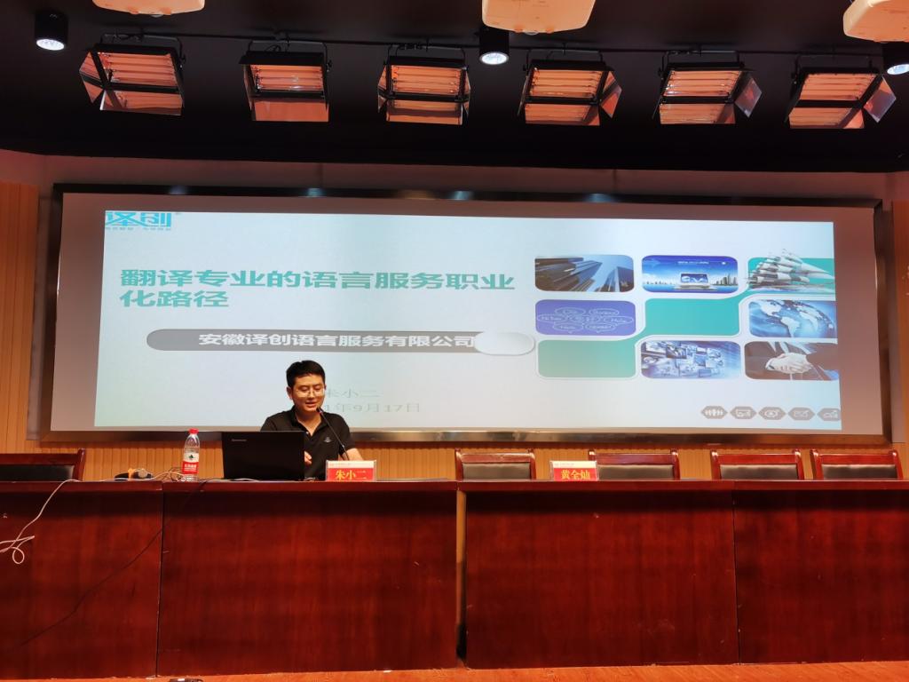 优秀校友、安徽译创语言服务有限公司、安徽高校语言服务联盟基地执行总监朱小二先生主讲,海角