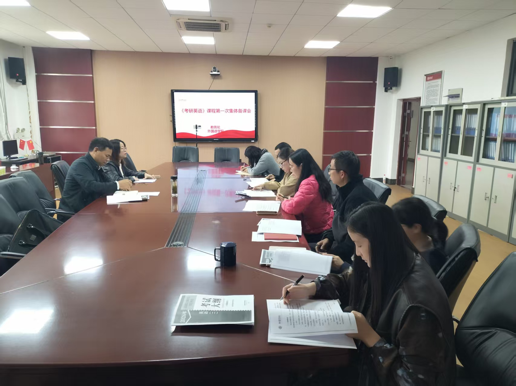 在E304会议室组织召开《考研英语》课程首次备课会。教务处处长潘锦云、海角