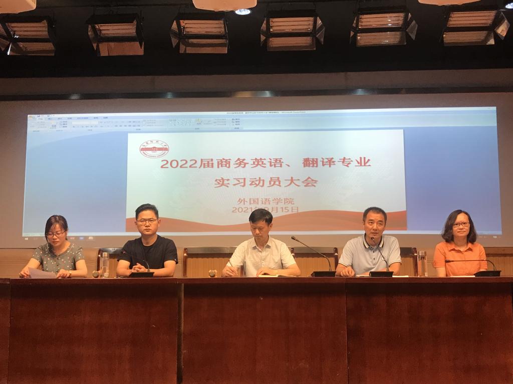 在E503召开2022届商务英语、翻译专业实习动员大会。院长王先荣、副院长江加宏、专业负责人及商务英语、翻译专业全体学生参加了会议。