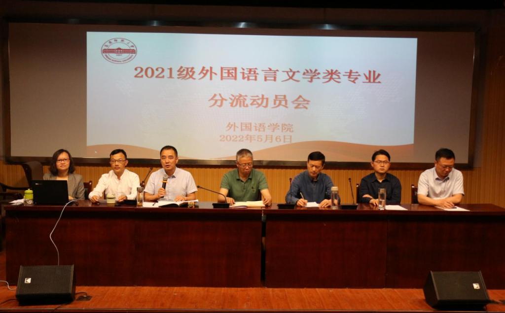 于E503召开2021级外国语言文学类专业分流动员大会,同时设立E314与E316分会场。海角