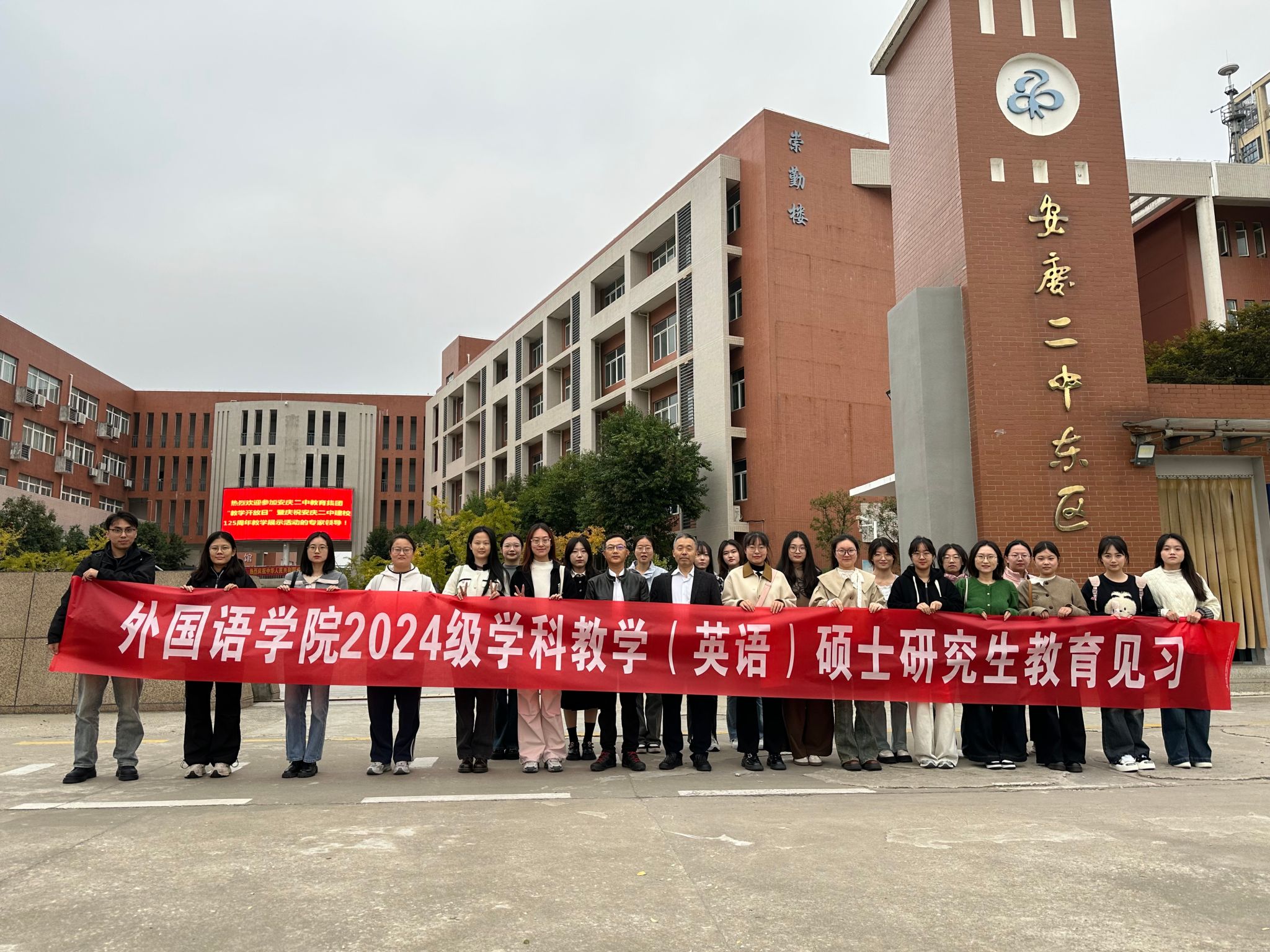 组织学科教学(英语)专业研究生赴安庆二中东校区开展教育见习活动。教育见习指导教师及2024级学科教学(英语)全体研究生参加了此次活动。