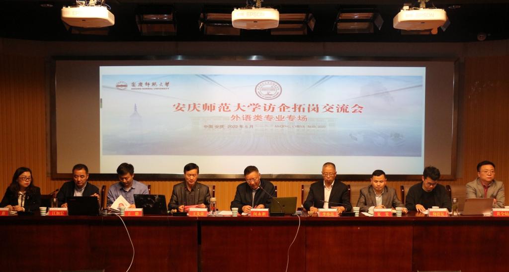 E503会议室举办外语类专业专场访企拓岗交流会,校党委副书记、校长闵永新、学生处副处长夏斐、海角