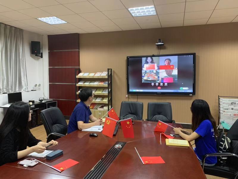 英语(合作)学生党支部通过视频连线的方式举行专题党日活动,与海(境)外学子同庆祖国母亲70岁华诞。