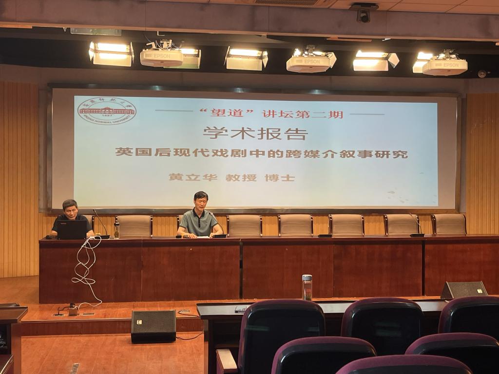 举办“望道”讲坛第二期活动,邀请硕士生导师黄立华教授在E503会议室作了题为“英国后现代戏剧中的跨媒介叙事研究”的学术报告。本次报告由学校科研处、研究生院、海角