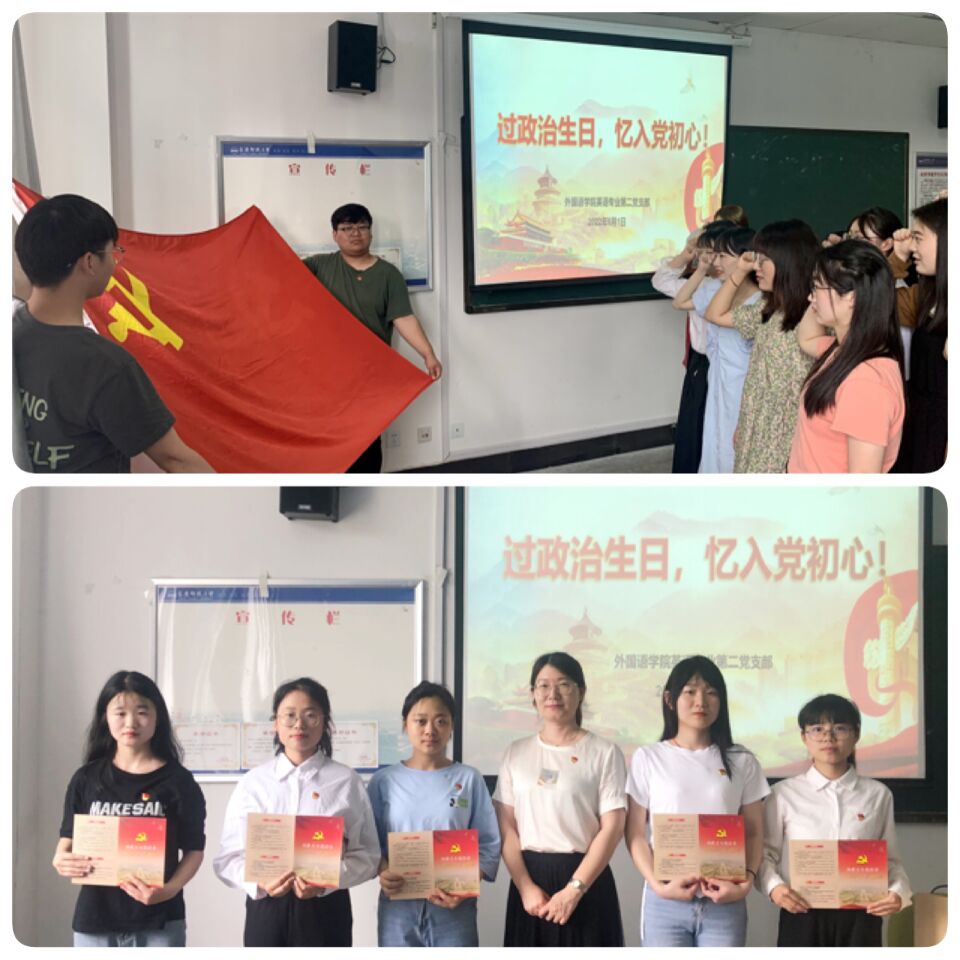 英语专业学生第二党支部于E404开展“过政治生日,忆入党初心”主题党日活动,支部全体党员参加了此次活动。