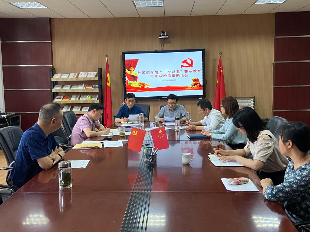 召开“三个以案”警示教育政治监督干部座谈会。学院党政领导、党委委员以及全体科级干部参加会议。