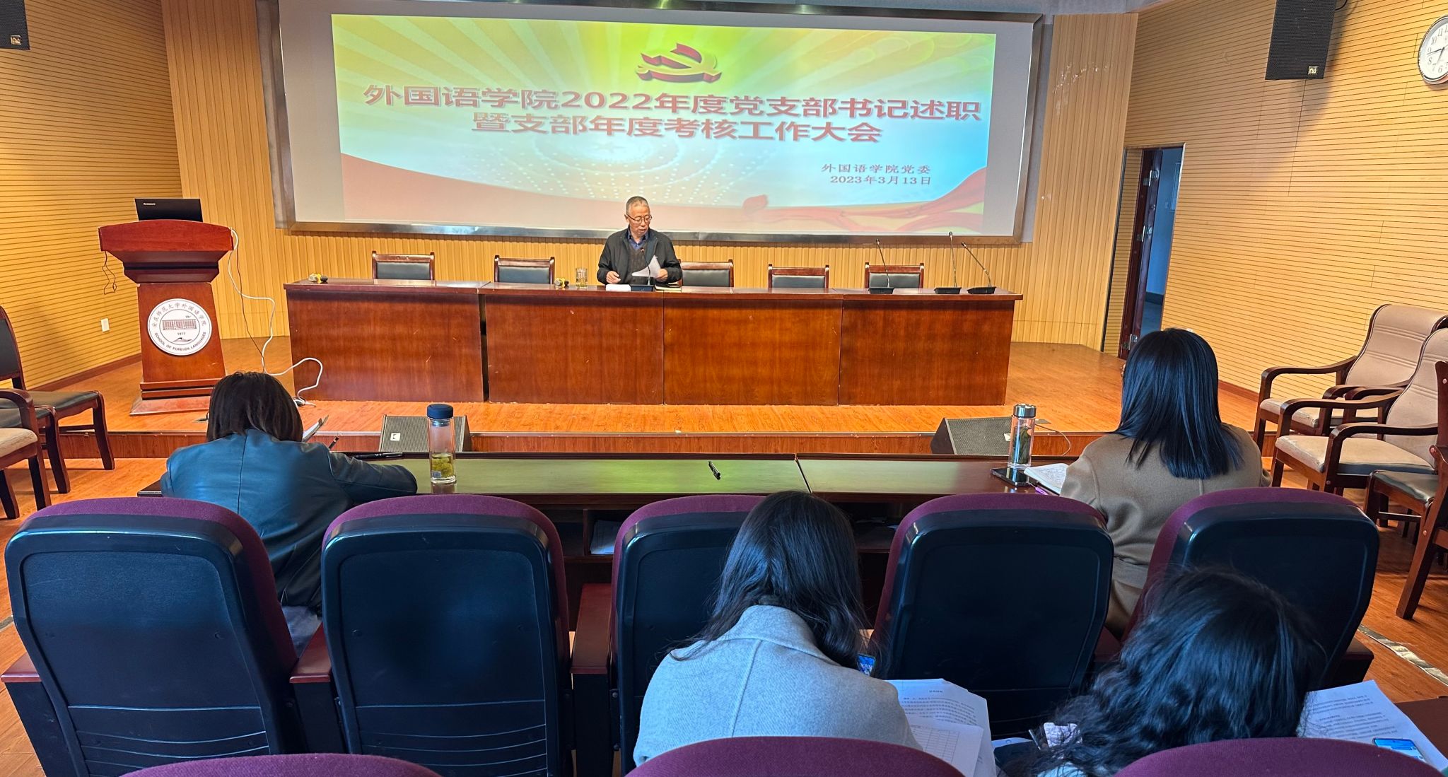 在学院报告厅召开2022年度党支部书记抓党的建设述职评议考核会议,学院党委委员、纪委委员、党支部书记、党支部委员、师生代表参加了会议。会议由学院党委书记李亦亮主持。