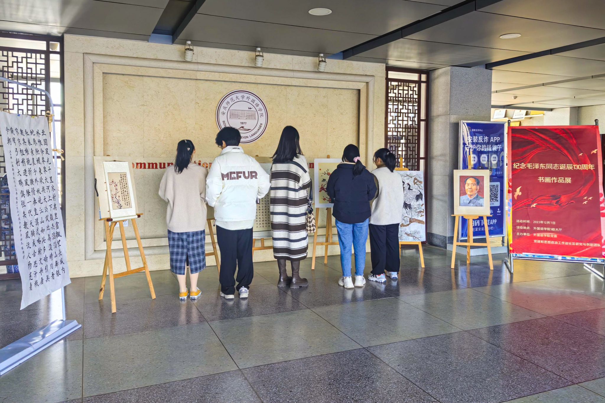 党委、学校党建和思想政治工作进社区研究与创新团队举行“纪念毛泽东同志诞辰130周年”书画作品展,300余名学生参与其中,共享一场诗词与书画的艺术碰撞。