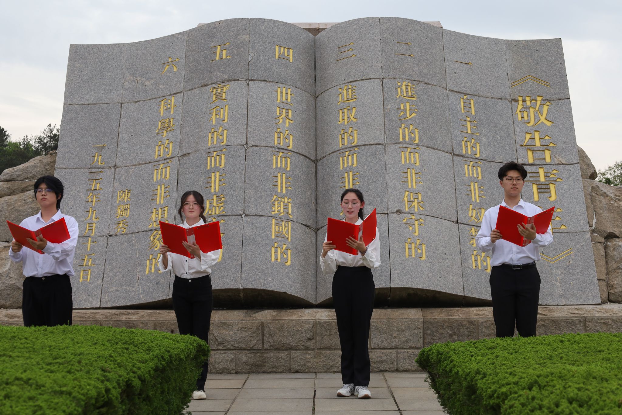 学生代表通过《敬告青年》的朗诵声,将对青年的呼唤和期望传递给现场的每一名学子。