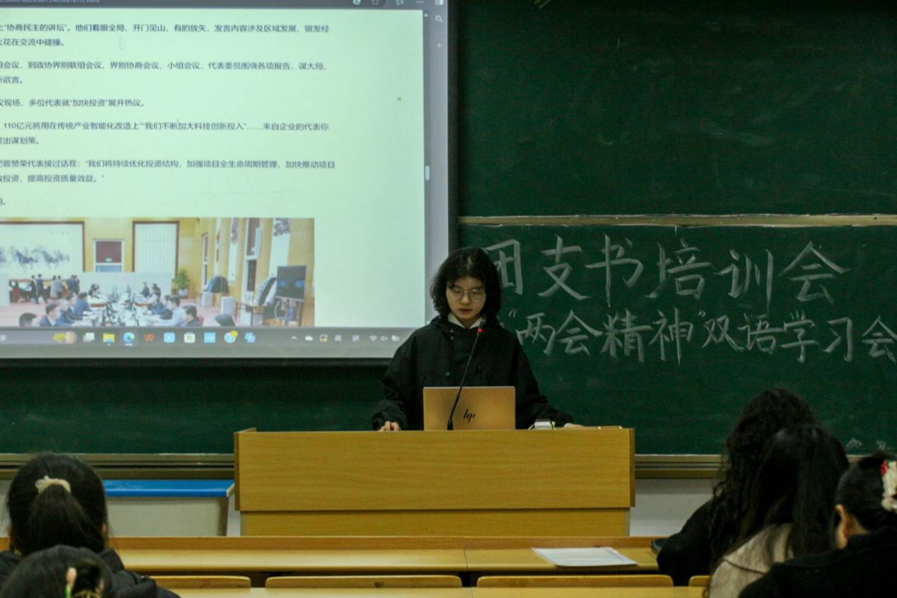 各班级开展了以“聚焦两会新风向,共启青春新征程”为主题的双语学习会。