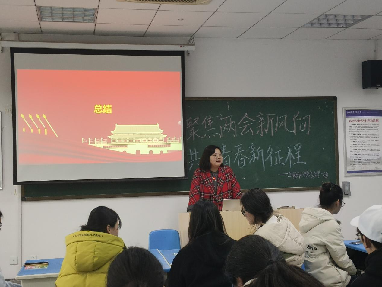 一直高度重视学生的思想政治教育,此次学习两会精神主题班会的开展,不仅拓宽了学生的视野,激发了学生的学习热情,更引导同学们深刻认识到自己肩负的时代使命。学院未来将持续开展形式多样的思想政治教育活动,引导学生在学习生活中积极践行两会精神,努力成长为德智体美劳全面发展的社会主义建设者和接班人,在推进强国建设、民族复兴伟业中贡献自己的青春力量。(撰稿:张雨婷、樊陈慧、李钰、宋晚月 摄影:张雨婷、蒋雨轩、洪歆璐 审核:何媛君)