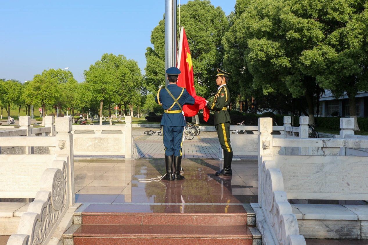 上午七时整,升旗仪式正式开始。国旗护卫队迈着整齐有力的步伐护送国旗入场。在激昂的国歌声中,升旗手将国旗奋力扬起,五星红旗冉冉升起,全体学生庄重地向国旗行注目礼,齐声高唱国歌,现场气氛热烈。