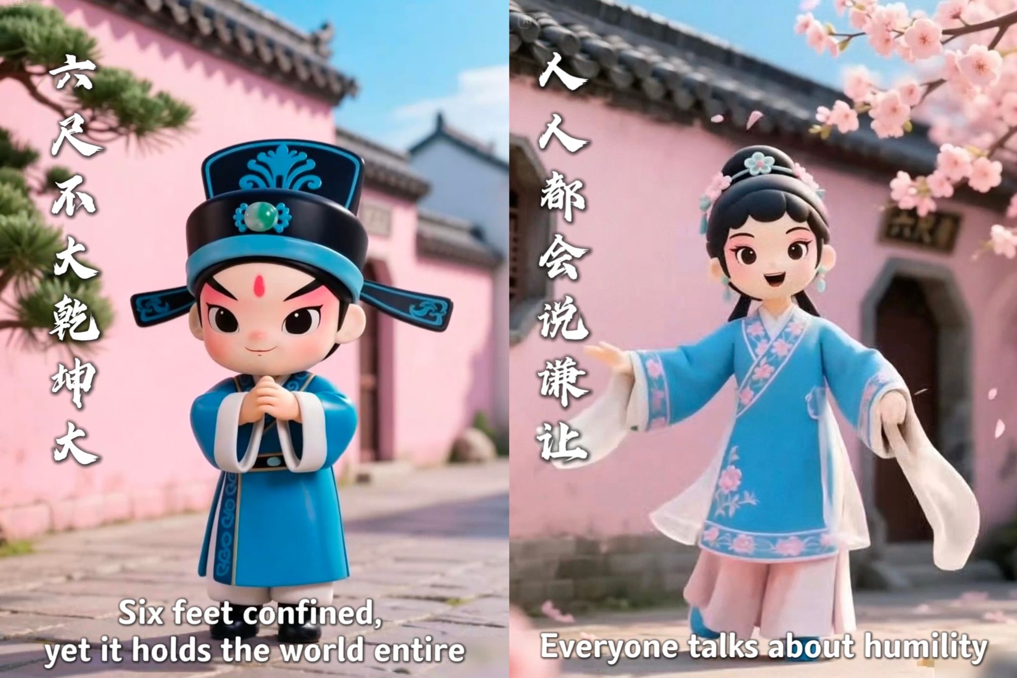 团队选取皖江文化瑰宝——黄梅戏经典《六尺巷·宽》唱段“让三尺,退三尺,桐城有个六尺巷,六尺不大乾坤大,六尺不阔像海洋。”为核心素材。利用人工智能技术,团队精心制作了AI黄梅戏视频。视频中,卡通化的戏曲人物形象灵动鲜活,动作行云流水,表情惟妙惟肖,完美融合了传统戏曲韵味与现代科技感。悠扬婉转的黄梅调搭配充满古韵的画面,生动诠释了廉洁自律、淡泊名利的高尚品质,让古老的廉政智慧以极具吸引力的形式触达当代观众。“黄梅戏是皖江文化的璀璨明珠,”翻译专业2023(2)班曹心怡表示,“AI技术让它焕发新生,也让廉洁文化的传播更生动、更有趣,能有效吸引年轻人关注。”
