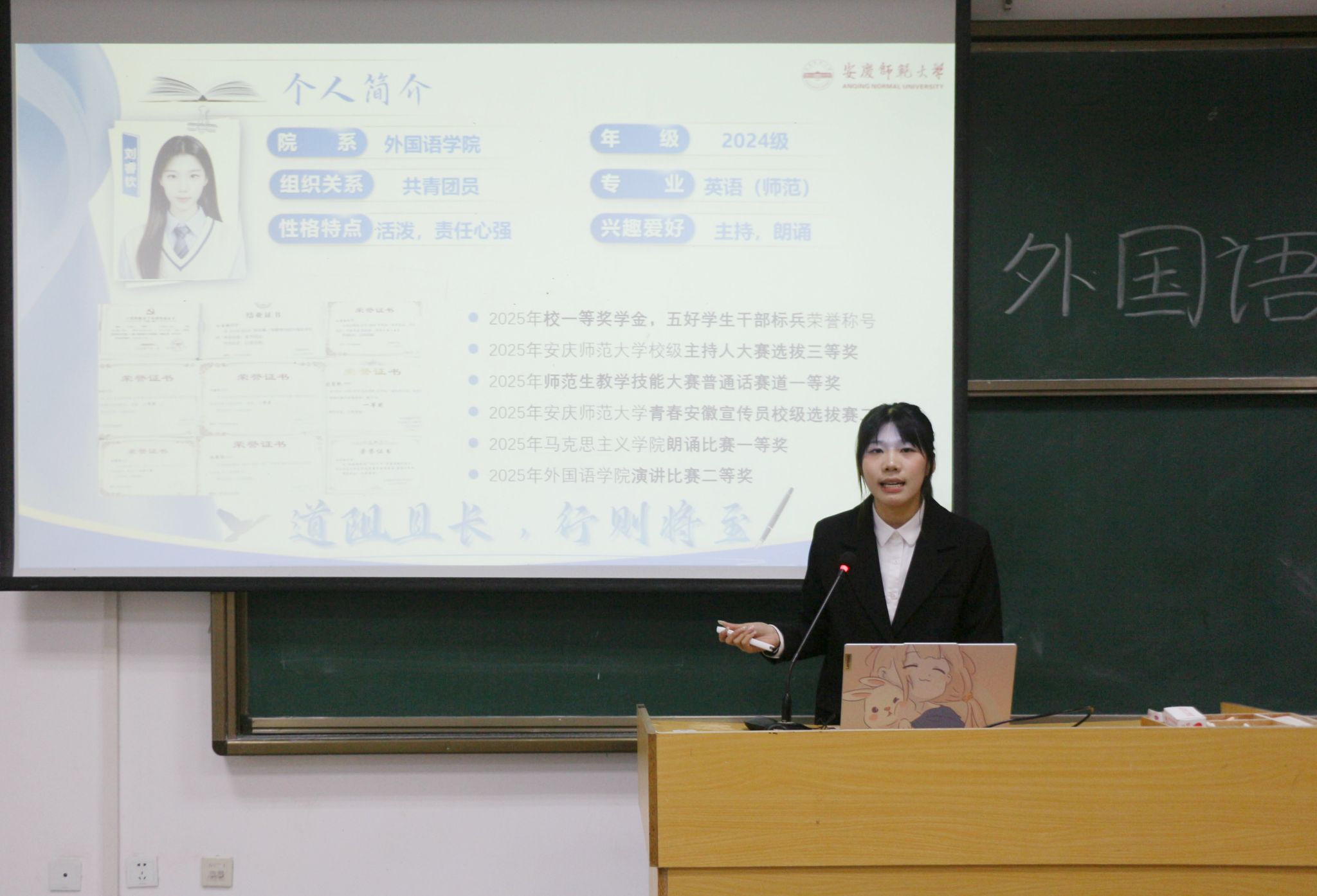 经过激烈角逐,2023级商务英语(1)班谭宁、研究生阮莹两位同学荣获一等奖;2024级翻译(1)班陈睿、研究生张楠两位同学荣获二等奖;2024级英语师范(2)刘睿钦、研究生黄成蕊两位同学荣获三等奖。