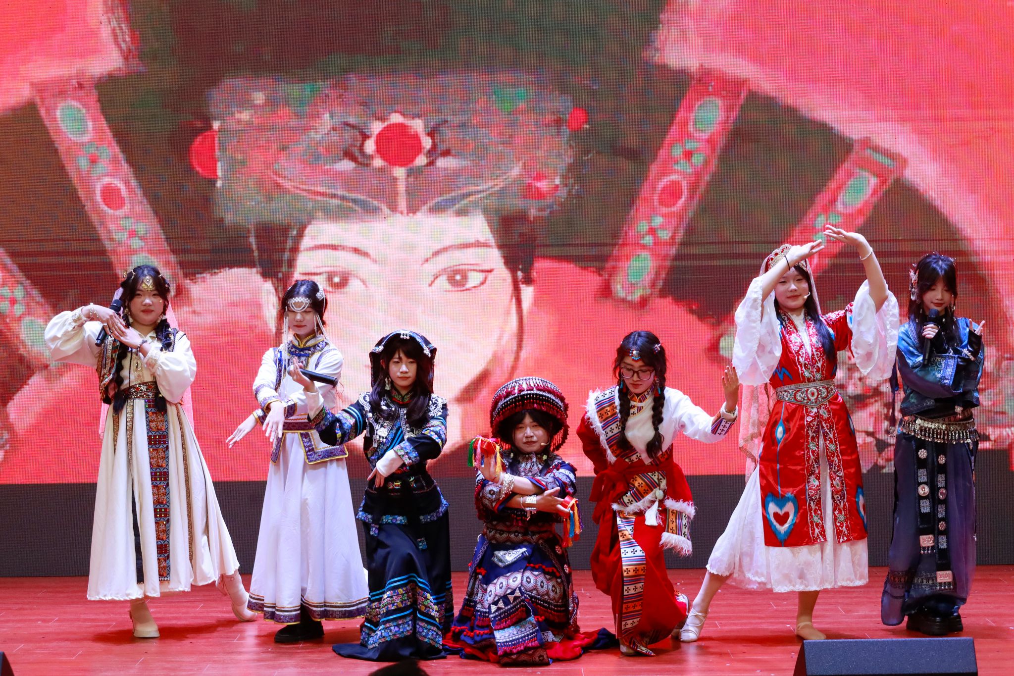 “除了快乐,禁止入内!”——轻快而坚定的歌声瞬间点燃全场热情。随后,小品《宿舍反诈启示录》以“当诈骗套路撞上机灵室友”的诙谐桥段,在笑声中筑牢安全防线;舞台中央,乐器合奏《小美满》流淌出温暖恬静的生活诗意;少数民族学子深沉吟唱“大山啊大山”,辽阔的乡土情怀萦绕心间;多语种《友谊地久天长》歌声交融,不同语言的真挚情谊在空气中流淌,余韵悠长;朗诵《青春护山河》以磅礴的气势、炽热的情感,展现了新时代青年与祖国山河血脉相连的深厚情谊……