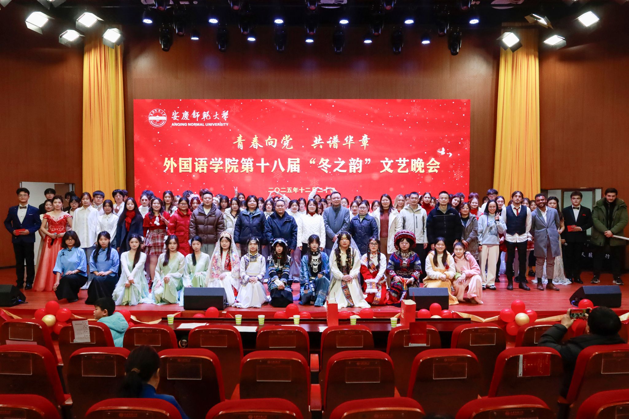班子,职能部门领导出席晚会,学院教师代表、各兄弟学院代表以及学院2025级全体学生齐聚一堂,在歌舞与欢笑中共赴这场文艺盛宴。