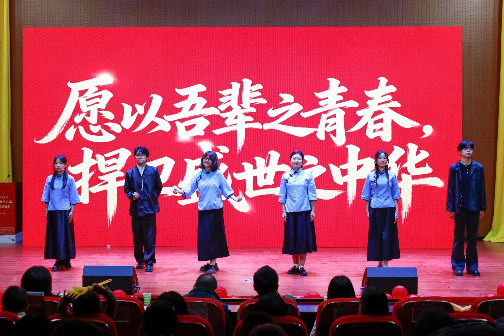 本次晚会以“青春向党·共谱华章”为主题,分为“青春起航迎新岁”“赤心向党铸华章”“时代同心谱新篇”三个篇章,涵盖歌曲、舞蹈、小品、朗诵、走秀、乐器合奏等多种形式,12个节目层层递进,既富青春活力,又饱含家国情怀,全方位展现了外院学子的综合素养与精神风貌。