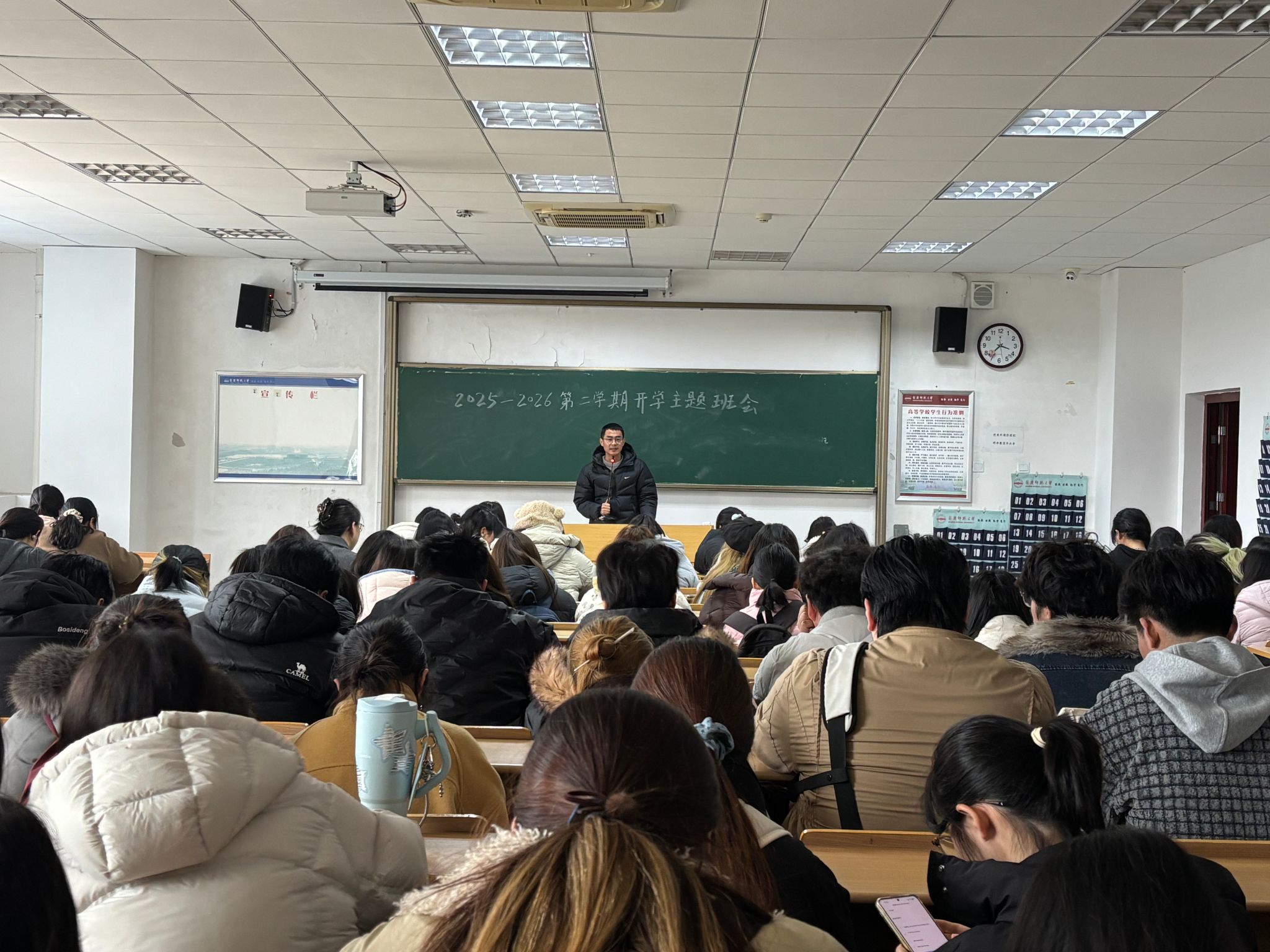新学期伊始,学院第一时间召开辅导员工作专题会议,传达学校2026年春季学期学生工作会议精神,围绕开学保障、学风建设、安全稳定、学生帮扶、家校联动等关键工作进行全面部署,要求全体辅导员深耕一线、真抓实干,持续把“五个一”工作落到实处,切实将学校工作要求转化为实际育人成效。全院专兼职辅导员全覆盖召开新学期主题班会、上好开学第一课。辅导员老师们根据不同年级学生特点精准施策,围绕反电信诈骗、交通、消防等重点领域开展安全教育,强化学生安全防范意识,引导学生调整作息、快速收心归位,尽快适应校园学习生活节奏,让主题班会真正成为思想引领、纪律教育、规划指导的有效载体,全力保障新学期学生工作平稳有序、高效开局。